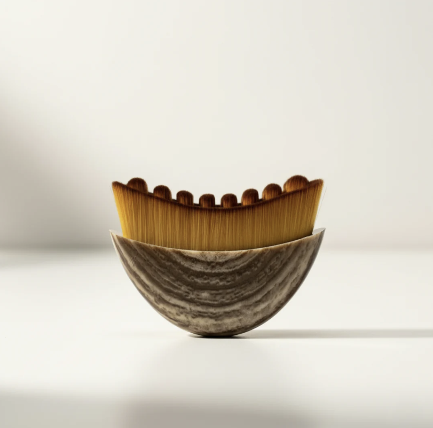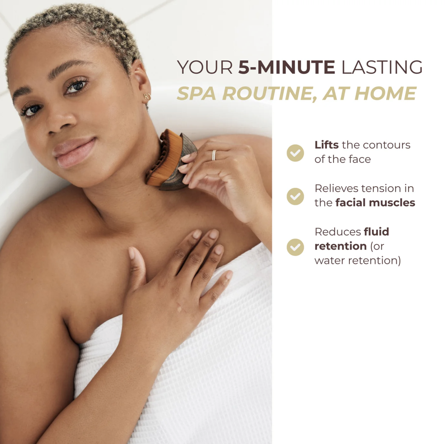 Orlani's Lymphatic Contour Frush uses a patented bristle density that “grips” your skin to gently activate lymphatic flow, the body’s natural detox and depuffing system.
